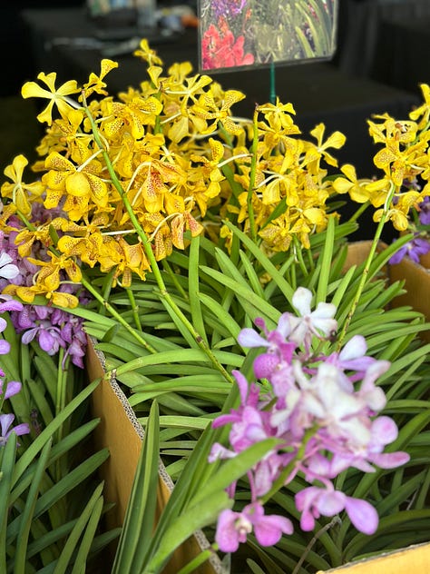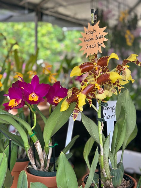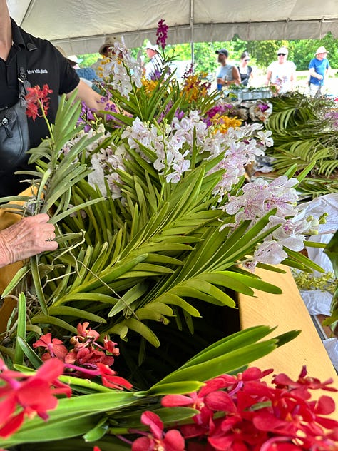 I first went to the orchid festival a year and a half ago. I was enchanted by the colors and species of the exotic blooms that exceeded The Fresh Market selection. This year there were more exhibitors than ever, but there was also a higher heat index. Dawn & I explored until the heavy heat prevented us from doing more. Even though I wasn’t able to visit every tent I still left invigorated. The next day I went to my office and painted a canvas that earlier in the week I had been completely stuck on. Sometimes, in order to do the task at hand, you have to not do the task at hand.